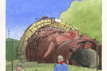 « C’est vrai qu’à Thil, à la cité du Colonel Fabien, nous n’avons pas encore l’eau chaude et pour aller aux toilettes, nous traversons la rue pour les mieux lotis ; ou c’est le pot de chambre pour les autres. Pourtant, moi j’ai toujours eu un faible pour Thil. La vue sur les usines et le viaduc était imprenable depuis chez nous. Presque tout le monde a un jardin potager dans la cité. Aujourd’hui nous appellerions cela un jardin ouvrier. Nous, avec mon grand-père, on a deux potagers. Celui du haut, vers le bois et la ferme et celui du bas derrière les écuries. On a aussi un box dans les écuries où on élève les lapins et les poules. Pour nous autres, enfants, tout cela est un terrain de jeux extraordinaire.